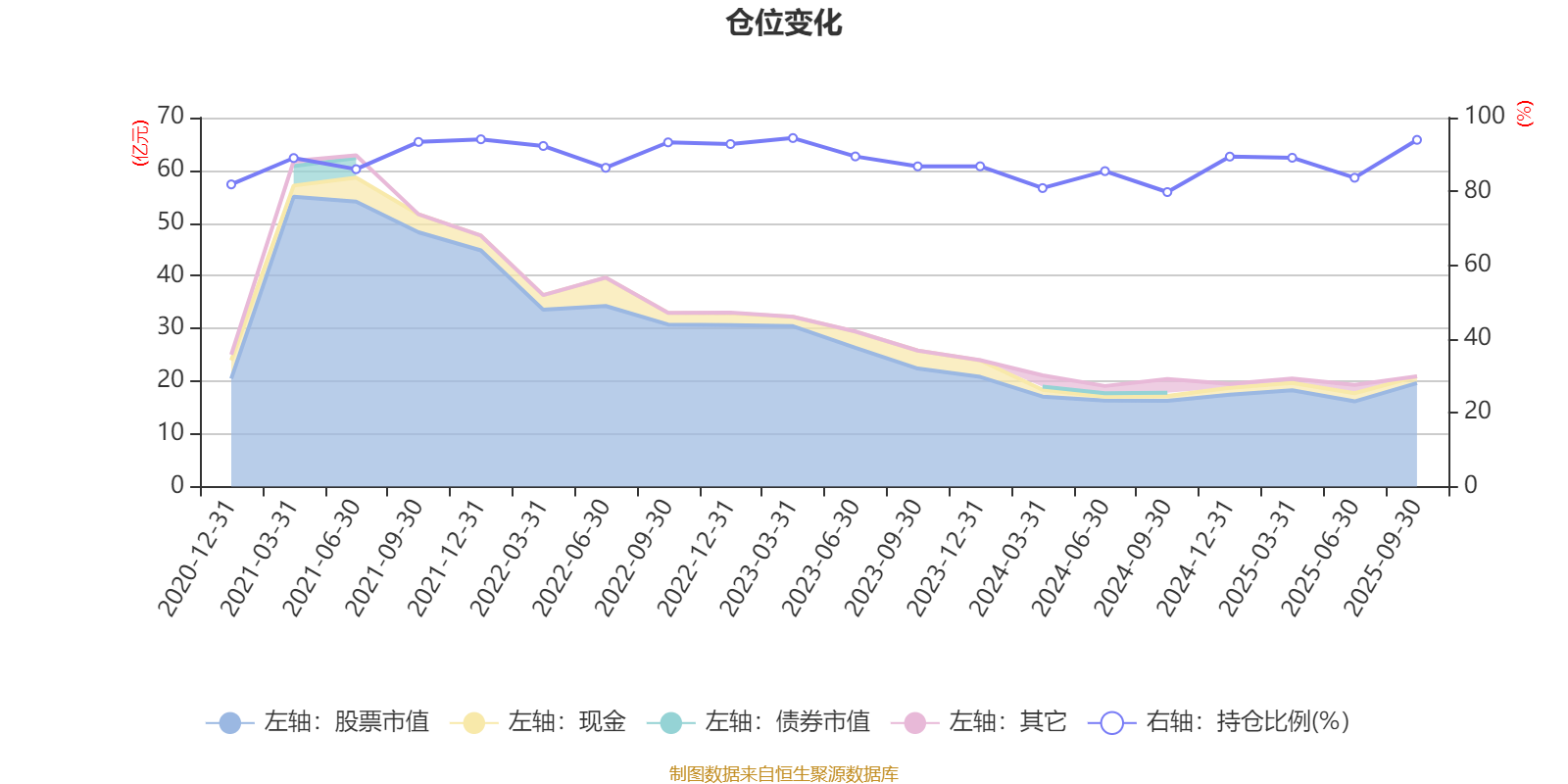 据定期报告数据统计,近三年平均股票仓位为87.73%,同类平均为88.58%。2023年一季度末基金达到94.46%的最高仓位,2024年三季度末最低,为79.81%。