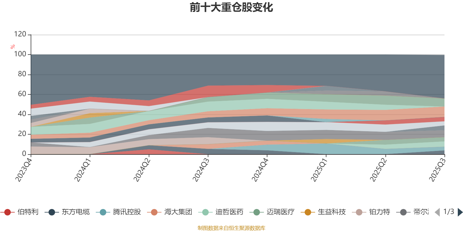 截至2025年三季度末,基金十大重仓股分别是中芯国际、理想汽车-W、帝尔激光、迪哲医药、百济神州、四方股份、迈瑞医疗、巨子生物、腾讯控股、东方电缆。