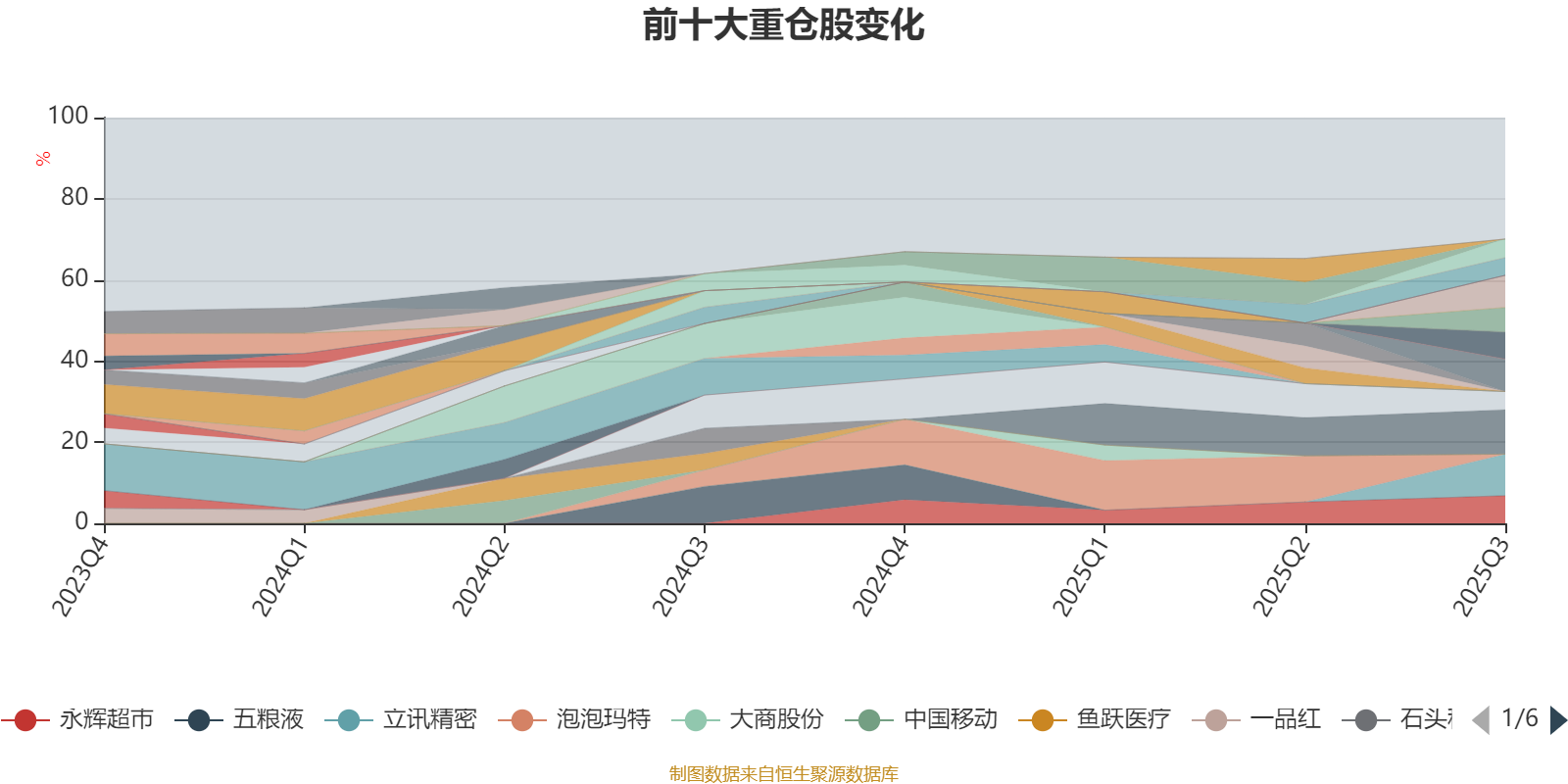 该基金持股集中度较高。截至2025年三季度末,基金十大重仓股分别是腾讯控股、立讯精密、三生制药、立华股份、永辉超市、上海新阳、恩华药业、百亚股份、美的集团、江淮汽车。