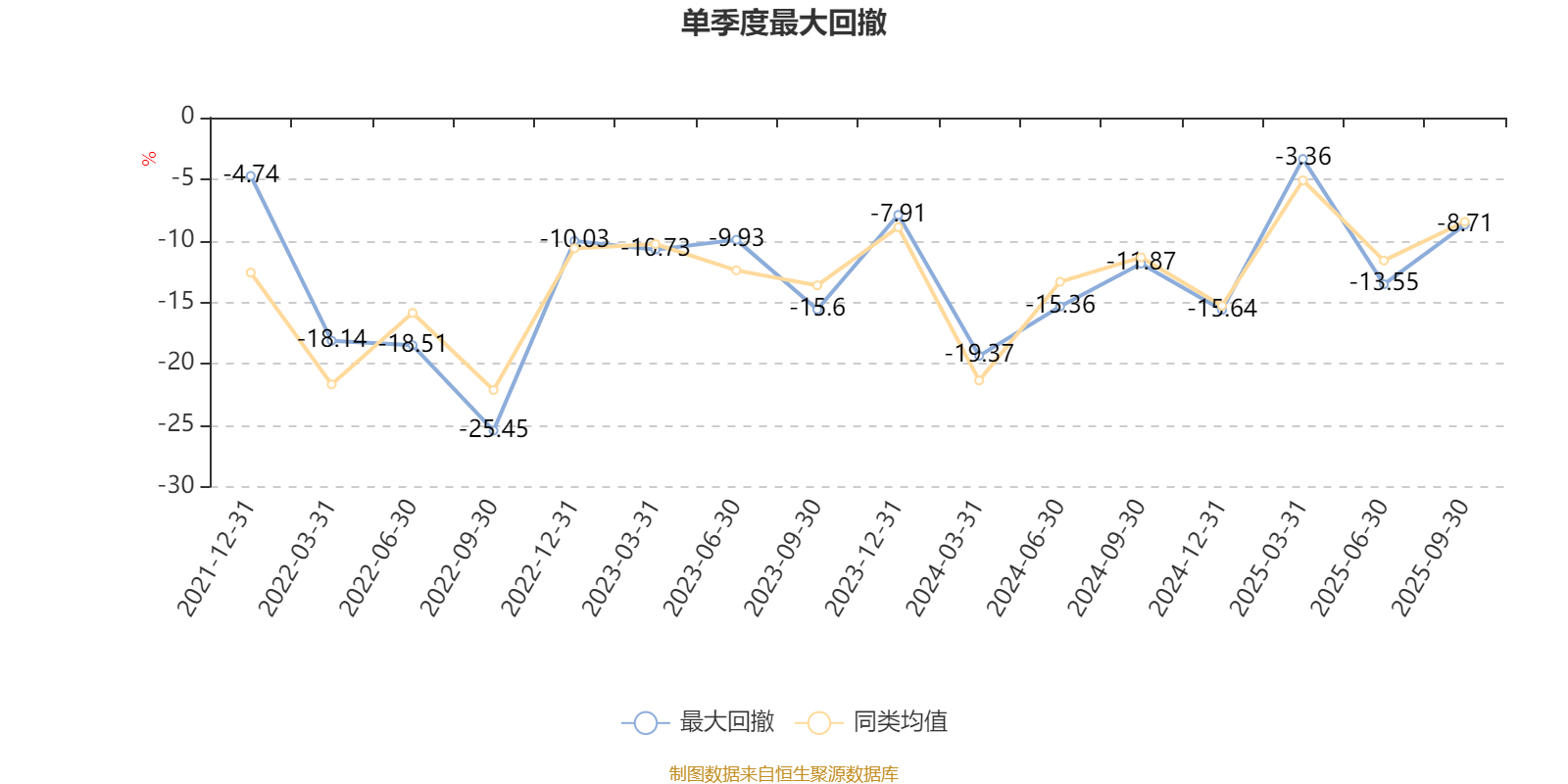 截至10月27日,基金近三年最大回撤为39.22%,同类可比基金排名23/48。单季度最大回撤出现在2022年三季度,为25.45%。