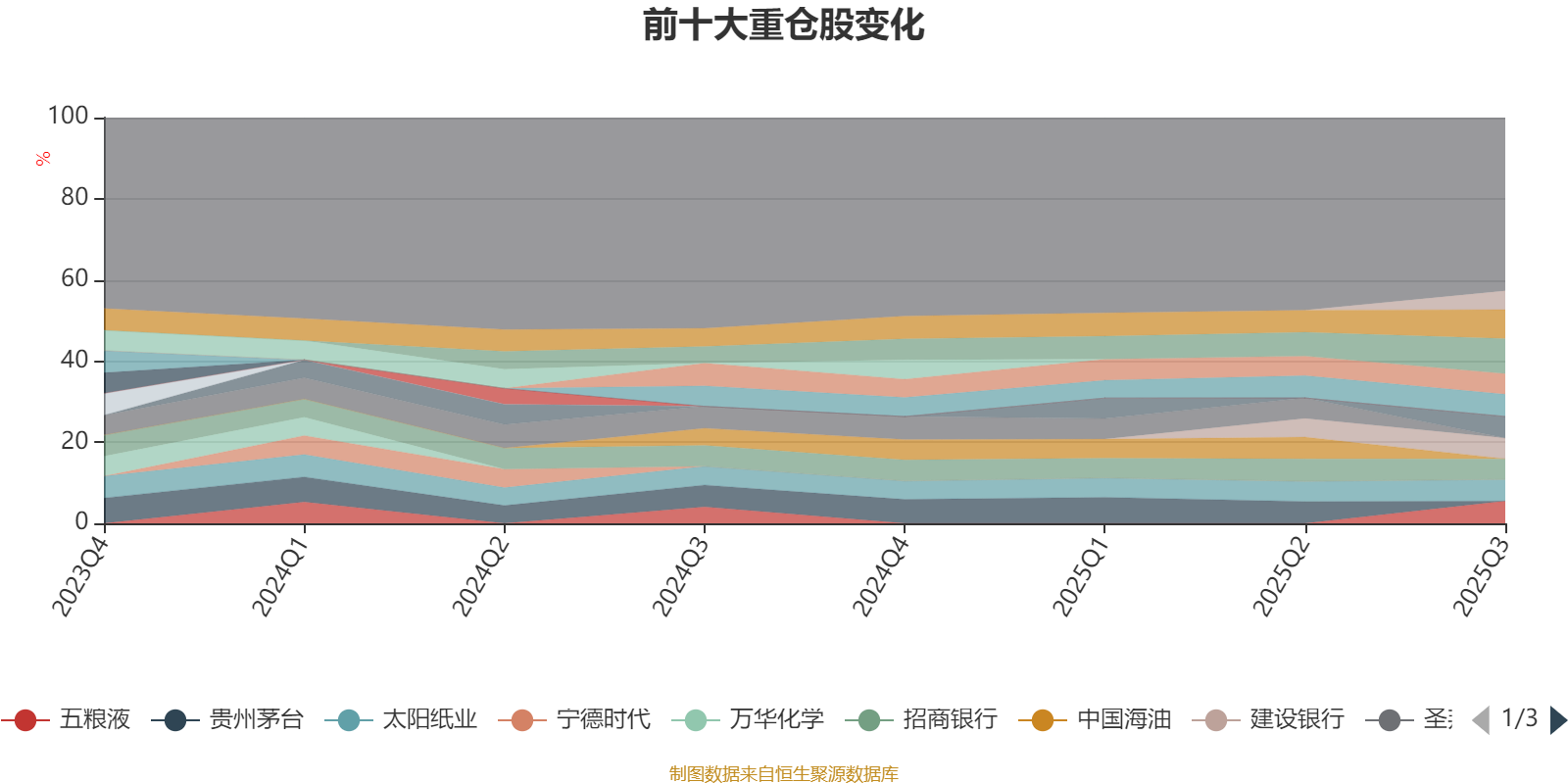 截至2025年三季度末,基金十大重仓股分别是华鲁恒升、中国巨石、五粮液、中国建筑、泸州老窖、太阳纸业、思瑞浦、建设银行、招商银行、兆易创新。