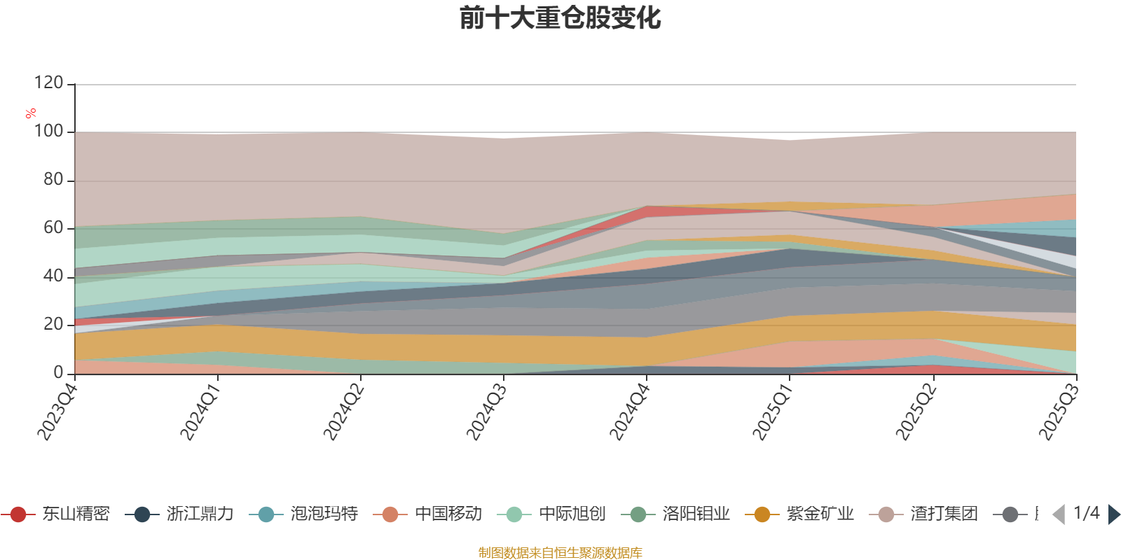 该基金持股集中度较高,近2年前十大重仓股集中度长期超过60%。截至2025年三季度末,基金十大重仓股分别是紫金矿业、新易盛、中际旭创、腾讯控股、阿里巴巴-W、工业富联、美的集团、沪电股份、渣打集团、小米集团-W。