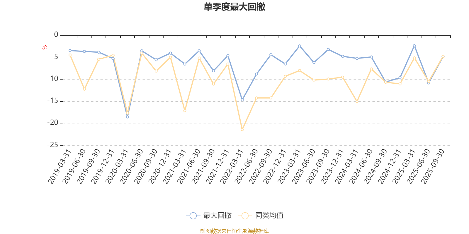 截至10月27日,基金近三年最大回撤为14.73%,同类可比基金排名2/56。单季度最大回撤出现在2020年一季度,为18.59%。