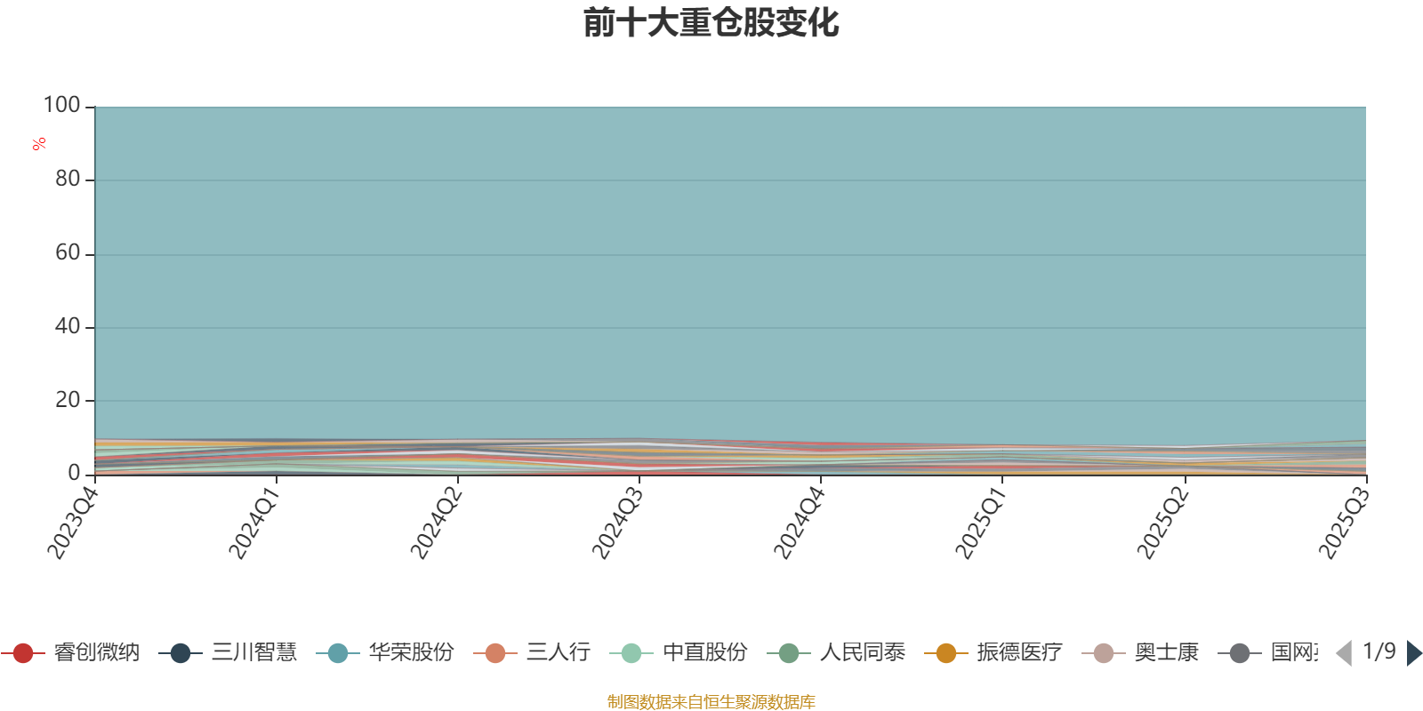 截至2025年三季度末,基金十大重仓股分别是中天科技、紫光国微、豪威集团、新和成、长电科技、海康威视、华策影视、华鲁恒升、大华股份、德赛西威。