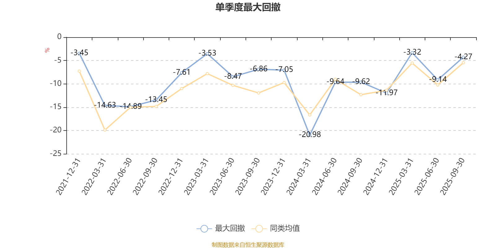 截至10月27日,基金近三年最大回撤为30.22%,同类可比基金排名27/87。单季度最大回撤出现在2024年一季度,为20.98%。