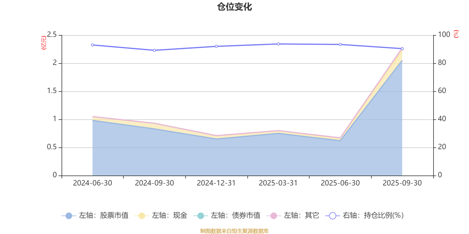 据定期报告数据统计,成立以来平均股票仓位为91.92%,同类平均为88.29%。2025年一季度末基金达到93.7%的最高仓位,2024年三季度末最低,为89.16%。