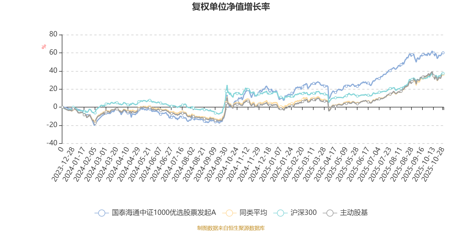 截至10月28日,国泰海通中证1000优选股票发起A近三个月复权单位净值增长率为12.15%,位于同类可比基金106/167;近半年复权单位净值增长率为35.10%,位于同类可比基金61/166;近一年复权单位净值增长率为44.80%,位于同类可比基金30/164。