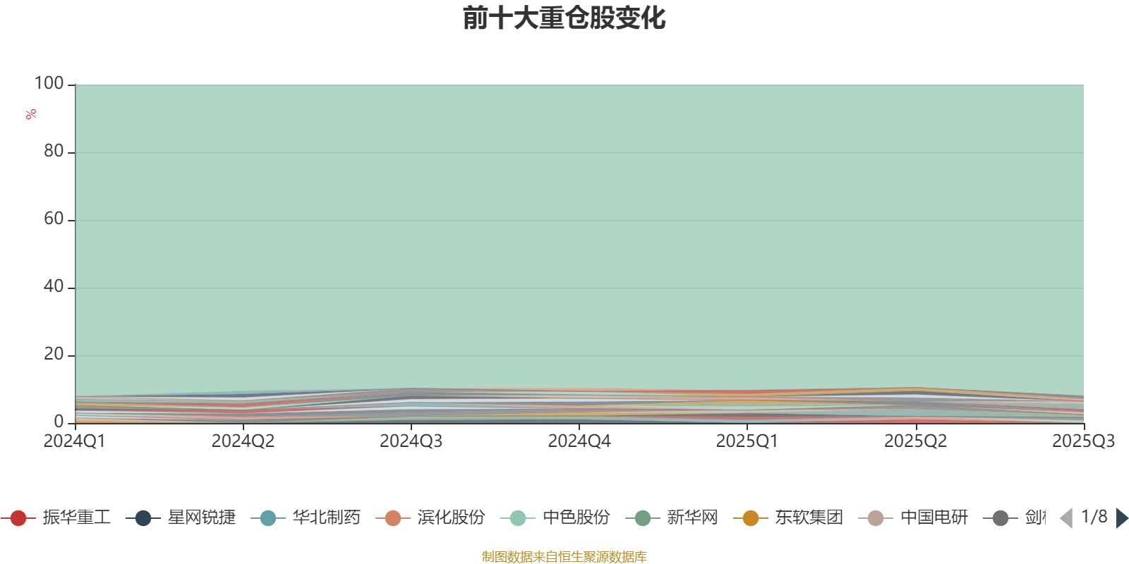 截至2025年三季度末,基金十大重仓股分别是紫江企业、华邦健康、同方股份、剑桥科技、中色股份、四川黄金、云天励飞、概伦电子、广立微、微芯生物。