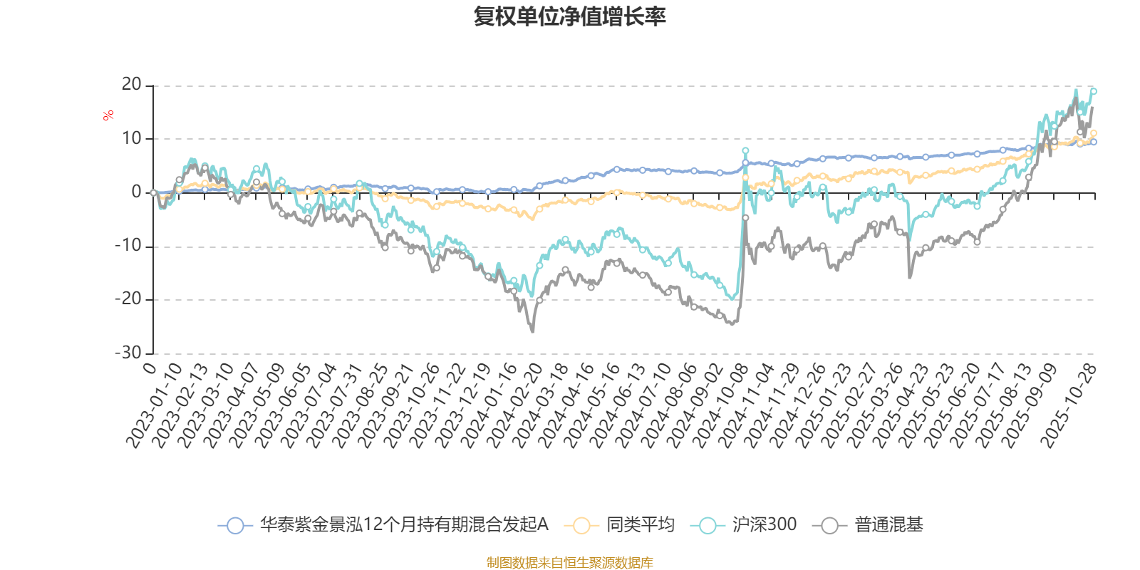 该基金属于偏债混合型基金。截至10月28日,单位净值为1.095元。基金经理是王曦、刘曼沁和王焘,目前共同管理的4只基金近一年均为正收益。其中,截至10月28日,华泰紫金安恒平衡配置混合发起A近一年复权单位净值增长率最高,达8.53%;华泰紫金景泓12个月持有期混合发起A最低,为3.78%。
