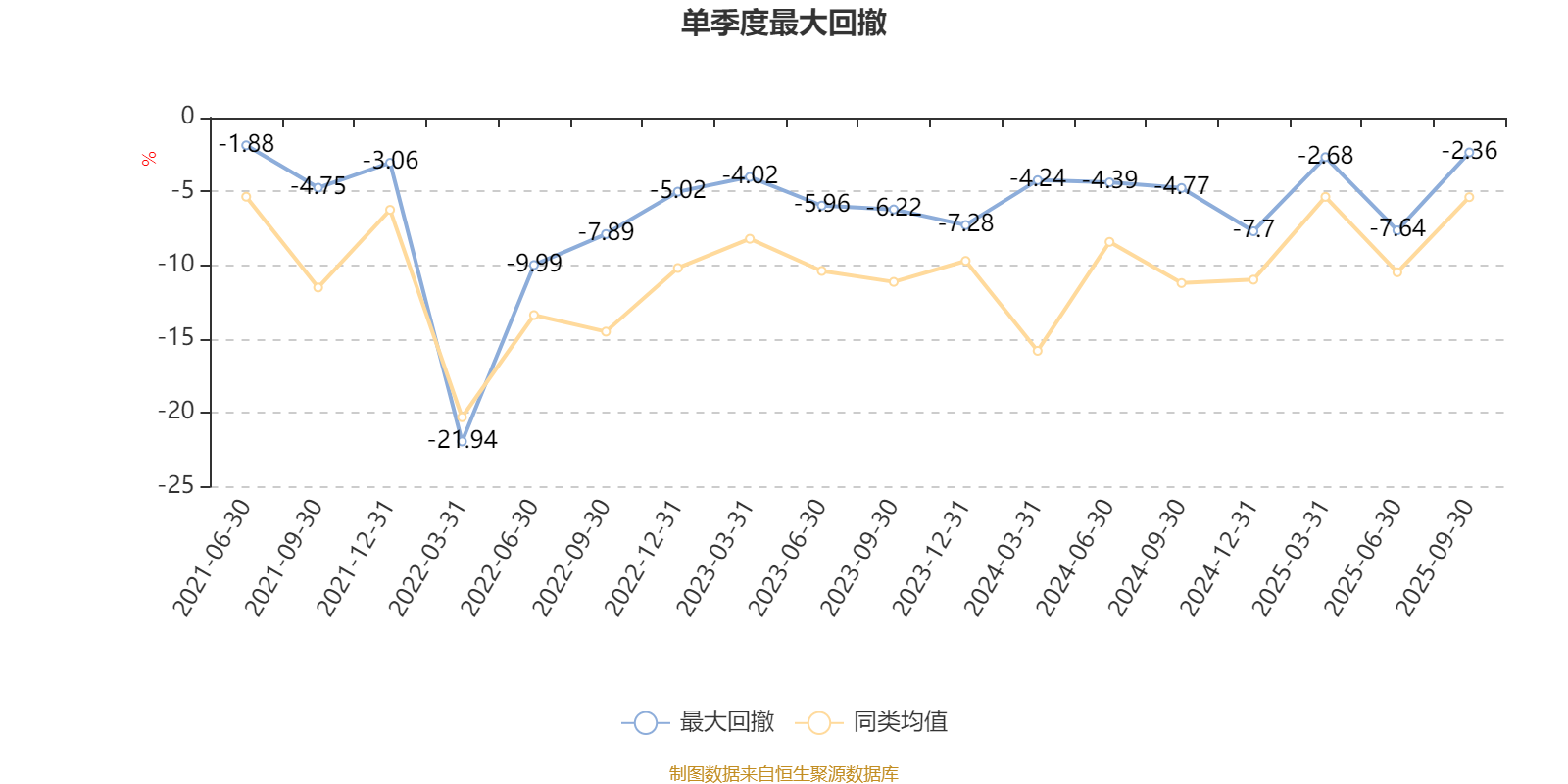 截至10月27日,基金近三年最大回撤为10.58%,同类可比基金排名1/251。单季度最大回撤出现在2022年一季度,为21.94%。