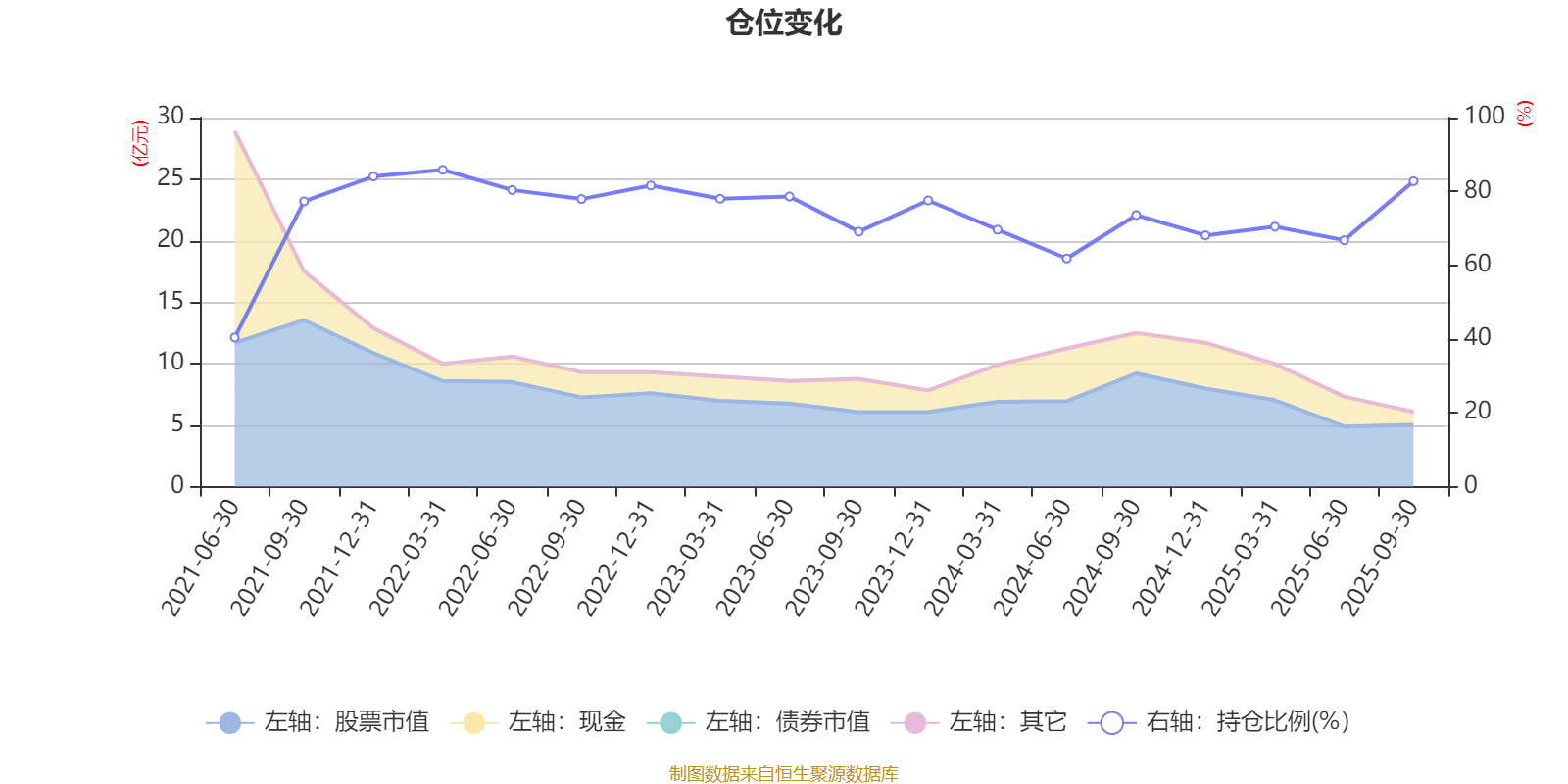 据定期报告数据统计,近三年平均股票仓位为73.16%,同类平均为85.99%。2022年一季度末基金达到85.85%的最高仓位,2021年上半年末最低,为40.4%。
