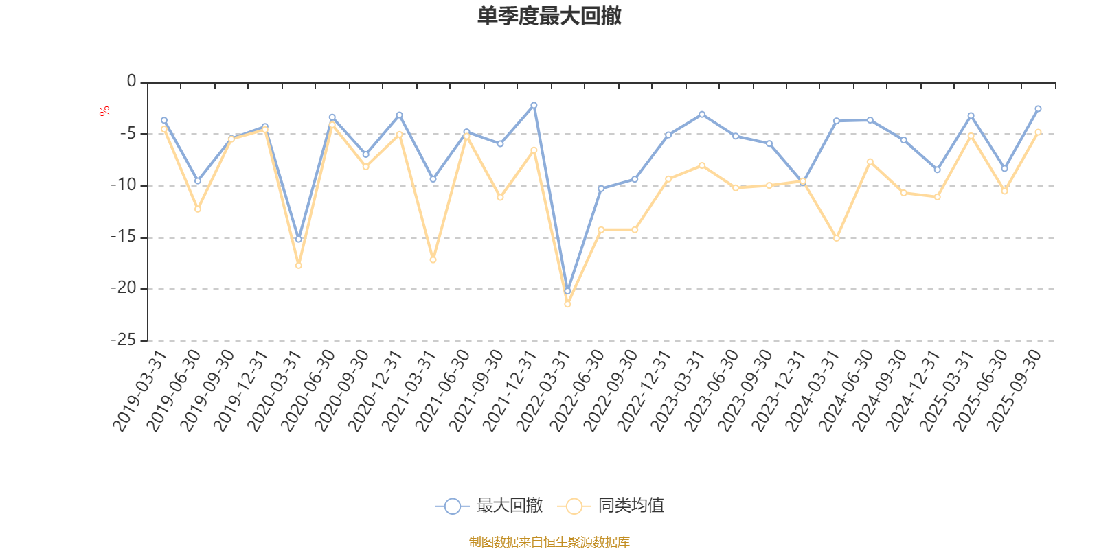 截至10月27日,基金近三年最大回撤为12.39%,同类可比基金排名1/56。单季度最大回撤出现在2022年一季度,为20.19%。