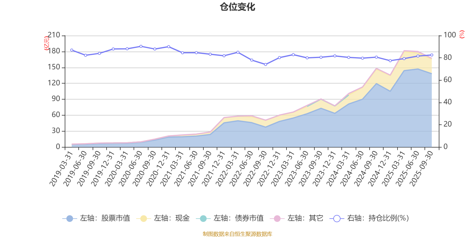 据定期报告数据统计,近三年平均股票仓位为80.6%,同类平均为88.58%。2020年上半年末基金达到90.34%的最高仓位,2022年三季度末最低,为74.1%。