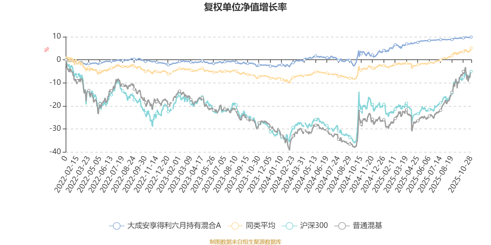 截至10月28日,大成安享得利六月持有混合A近三个月复权单位净值增长率为0.96%,位于同类可比基金502/629;近半年复权单位净值增长率为2.05%,位于同类可比基金566/629;近一年复权单位净值增长率为7.07%,位于同类可比基金290/623;近三年复权单位净值增长率为10.70%,位于同类可比基金322/557。