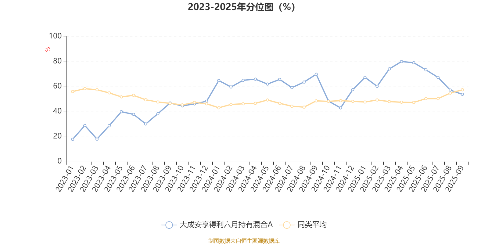 通过所选区间该基金净值增长率分位图,可以观察该基金与同类基金业绩比较情况。图为坐标原点到区间内某时点的净值增长率在同类基金中的分位数。
