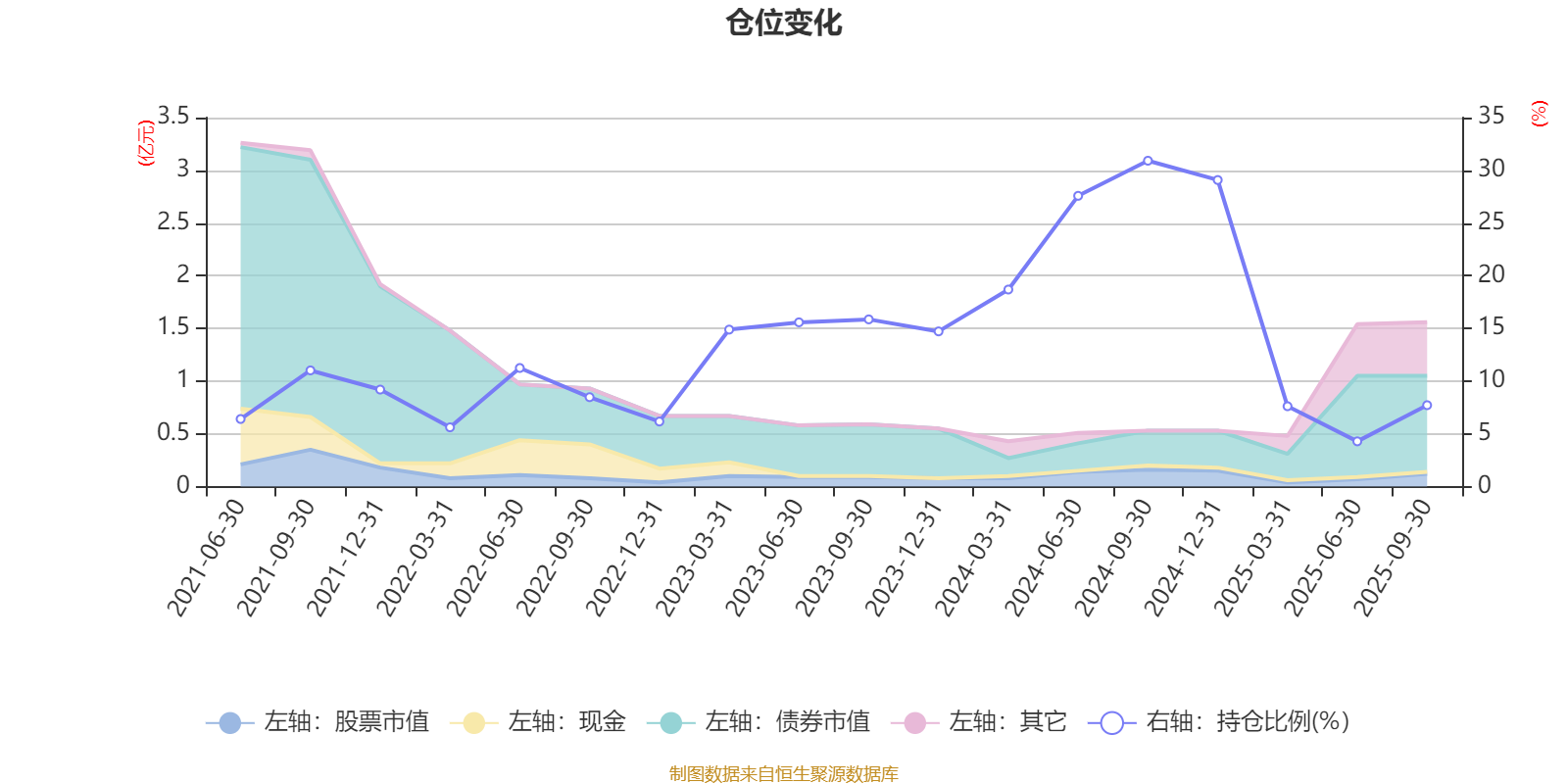 据定期报告数据统计,近三年平均股票仓位为16.09%,同类平均为19.14%。2024年三季度末基金达到30.91%的最高仓位,2025年上半年末最低,为4.29%。