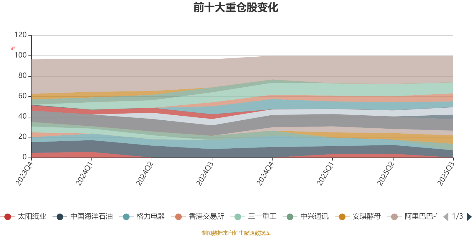该基金持股集中度较高,近2年前十大重仓股集中度长期超过60%。截至2025年三季度末,基金十大重仓股分别是中国移动、美的集团、安琪酵母、腾讯控股、鱼跃医疗、中国海洋石油、中兴通讯、中国联通、阿里巴巴-W、贝壳-W。