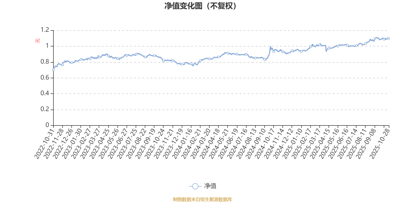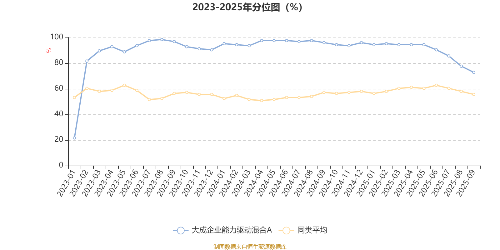 通过所选区间该基金净值增长率分位图,可以观察该基金与同类基金业绩比较情况。图为坐标原点到区间内某时点的净值增长率在同类基金中的分位数。