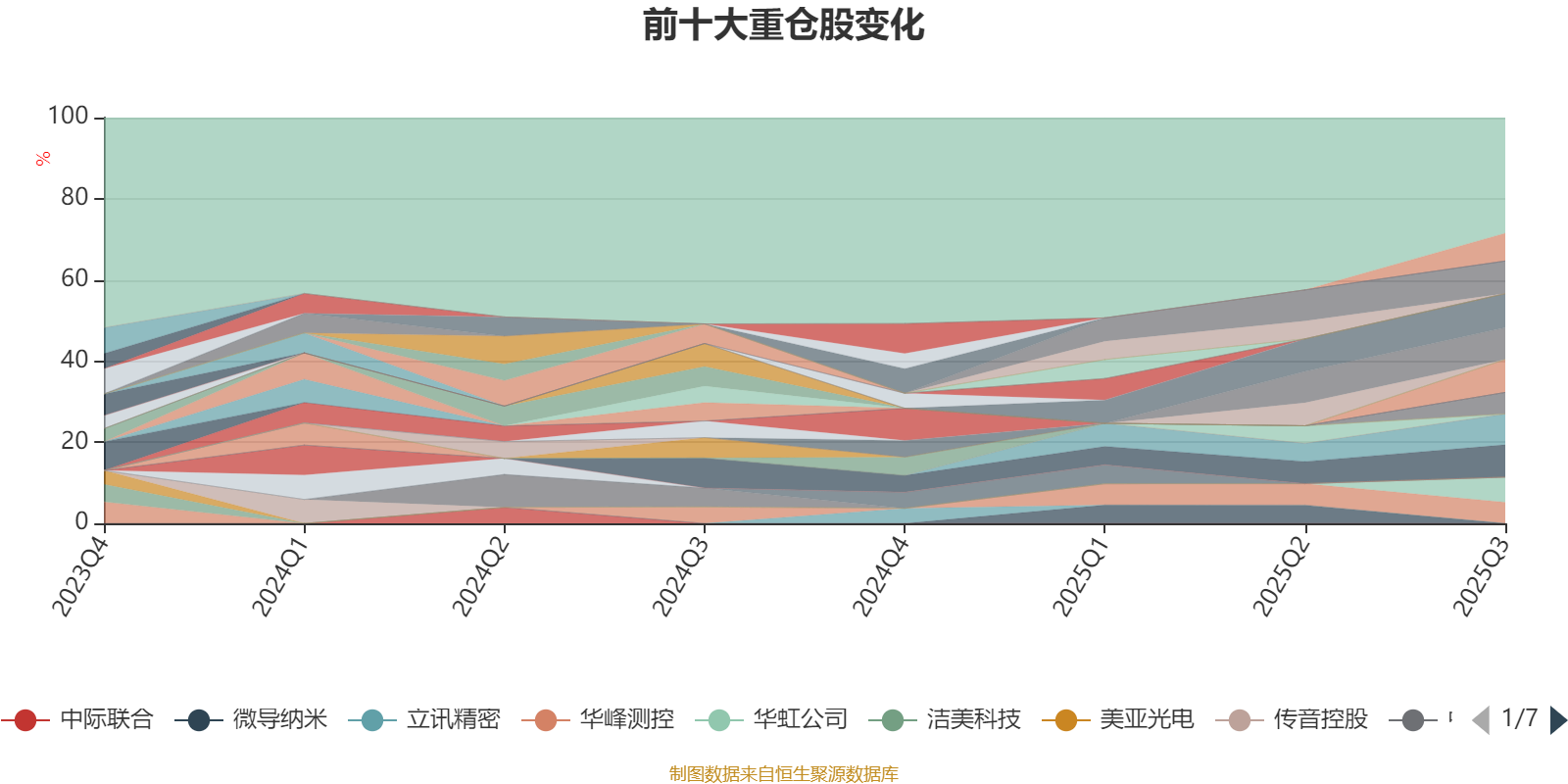 截至2025年三季度末,基金十大重仓股分别是芯源微、长川科技、拓荆科技、中微公司、中科飞测、北方华创、富创精密、华虹公司、汇成股份、华峰测控。