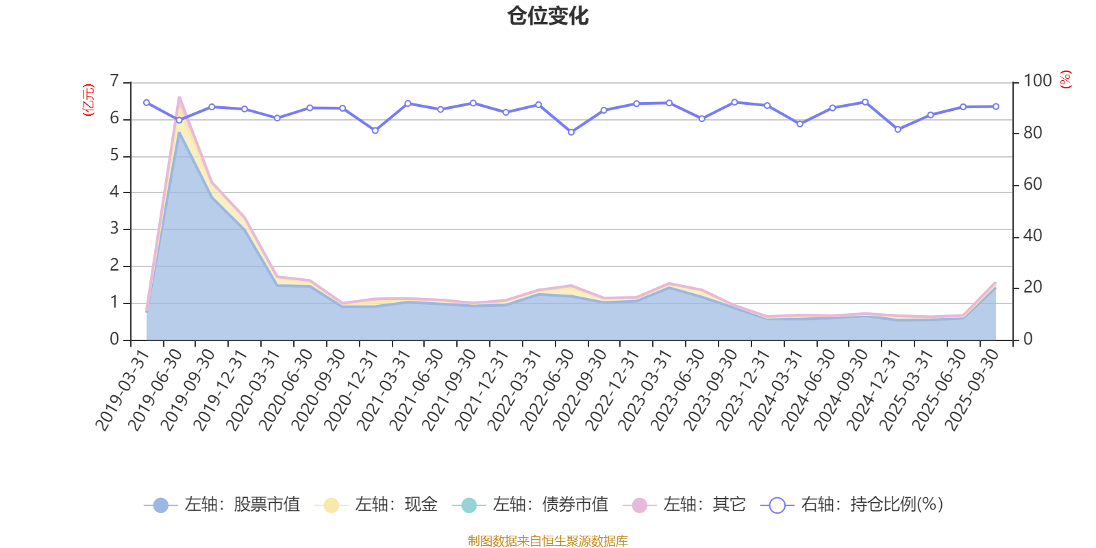 据定期报告数据统计,近三年平均股票仓位为89.08%,同类平均为88.23%。2024年三季度末基金达到92.31%的最高仓位,2022年上半年末最低,为80.64%。