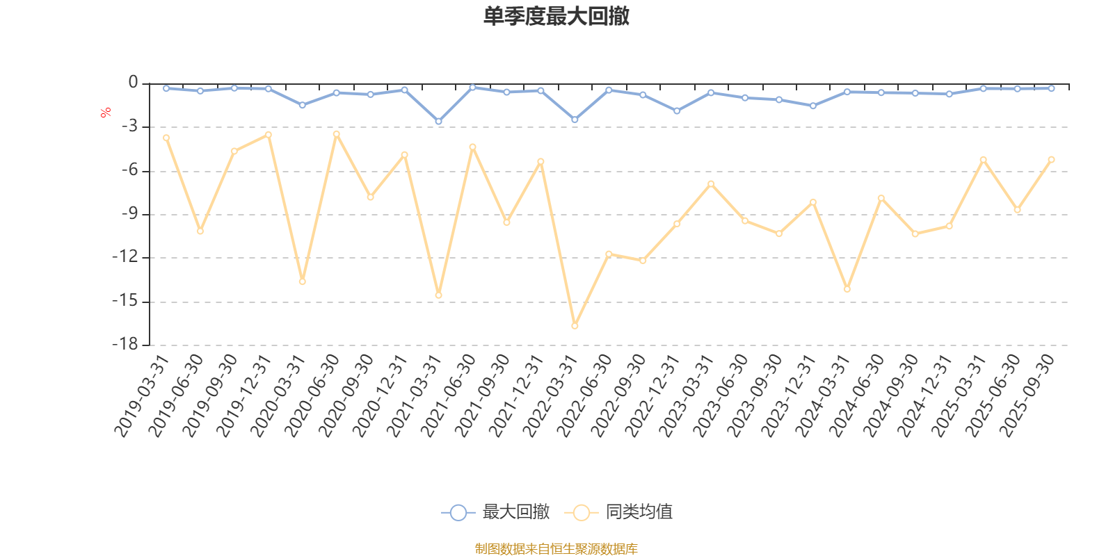 截至10月27日,基金近三年最大回撤为2.19%,同类可比基金排名28/1274。单季度最大回撤出现在2021年一季度,为2.61%。