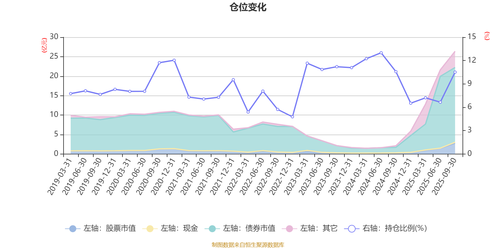 据定期报告数据统计,近三年平均股票仓位为9.69%,同类平均为72.35%。2024年上半年末基金达到13%的最高仓位,2022年末最低,为4.77%。