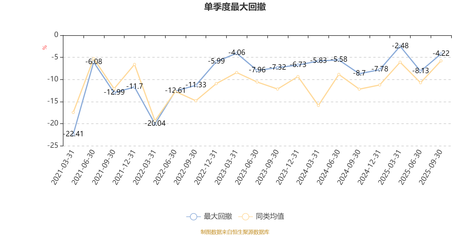 截至10月27日,基金近三年最大回撤为18.15%,同类可比基金排名12/363。单季度最大回撤出现在2021年一季度,为22.41%。