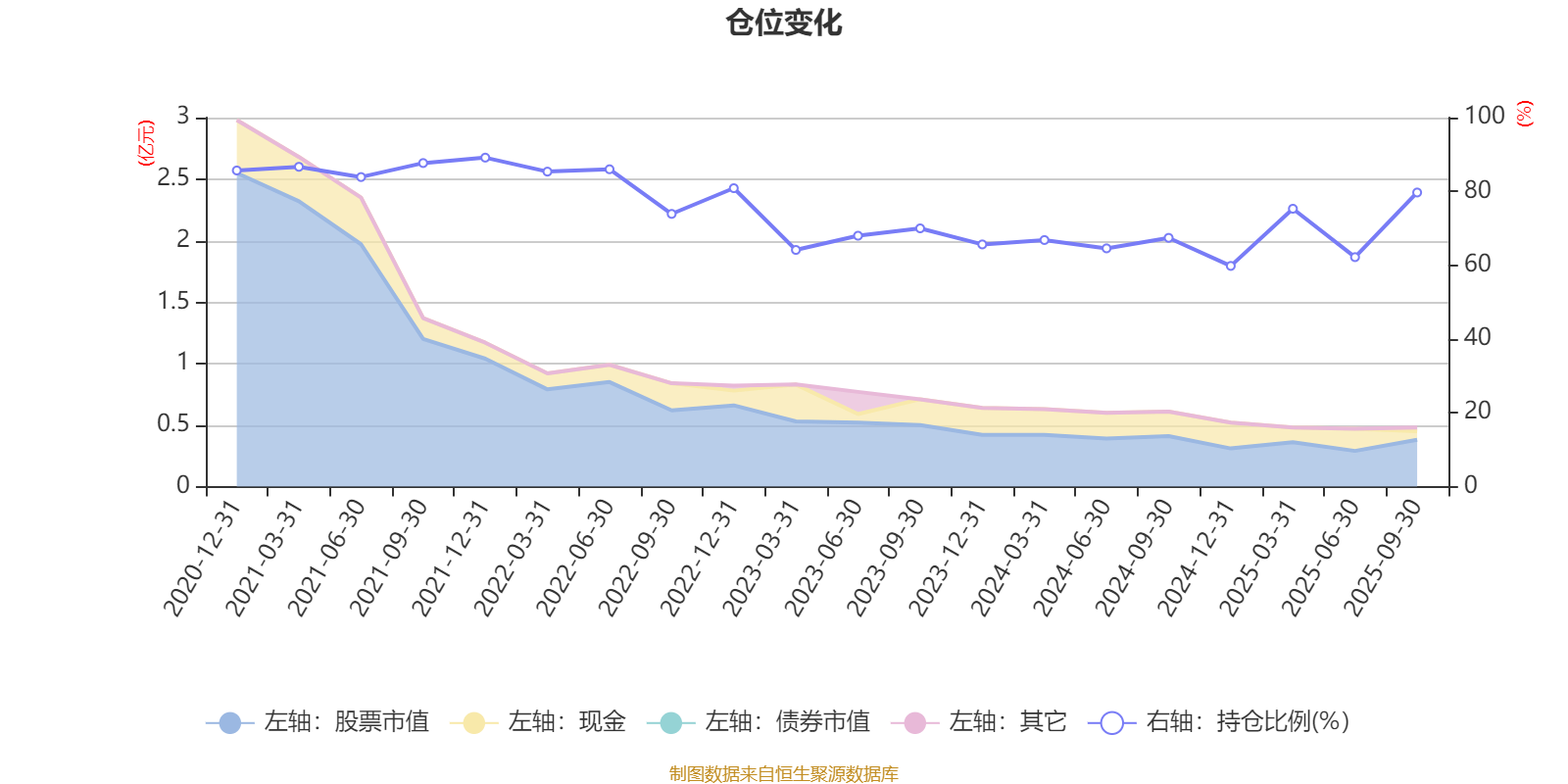 据定期报告数据统计,近三年平均股票仓位为68.7%,同类平均为83.73%。2021年末基金达到89.15%的最高仓位,2024年末最低,为59.8%。