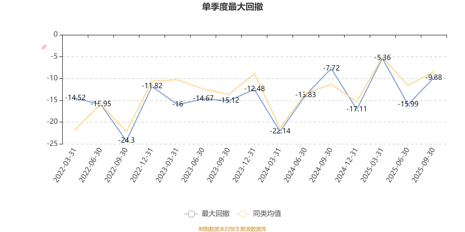 截至10月27日,基金近三年最大回撤为49.03%,同类可比基金排名45/48。单季度最大回撤出现在2022年三季度,为24.3%。