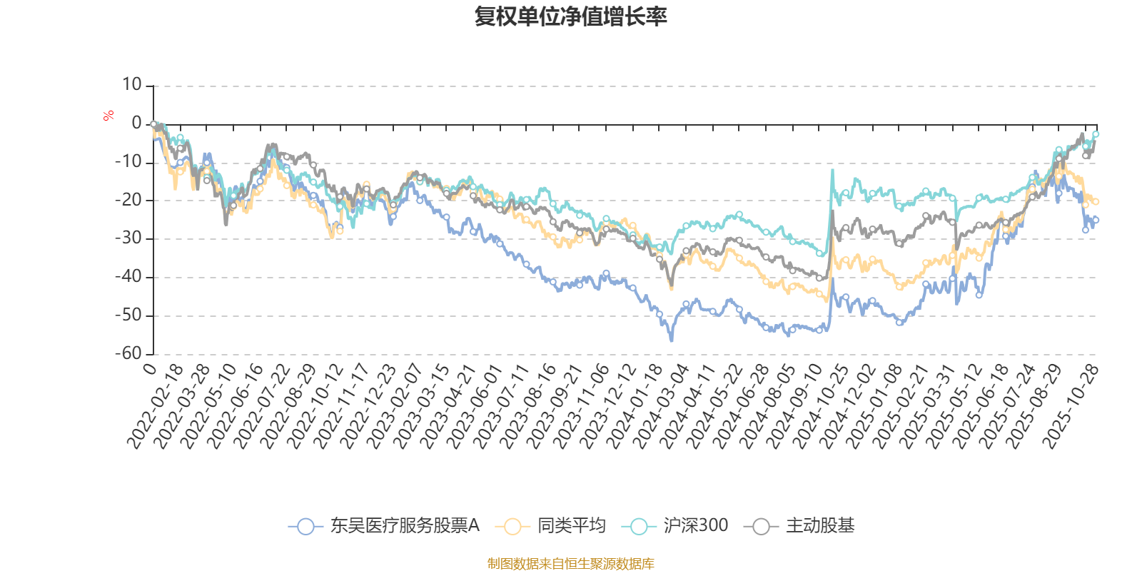 截至10月28日,东吴医疗服务股票A近三个月复权单位净值增长率为-11.60%,位于同类可比基金49/57;近半年复权单位净值增长率为25.10%,位于同类可比基金19/57;近一年复权单位净值增长率为38.22%,位于同类可比基金13/55;近三年复权单位净值增长率为-2.74%,位于同类可比基金30/48。