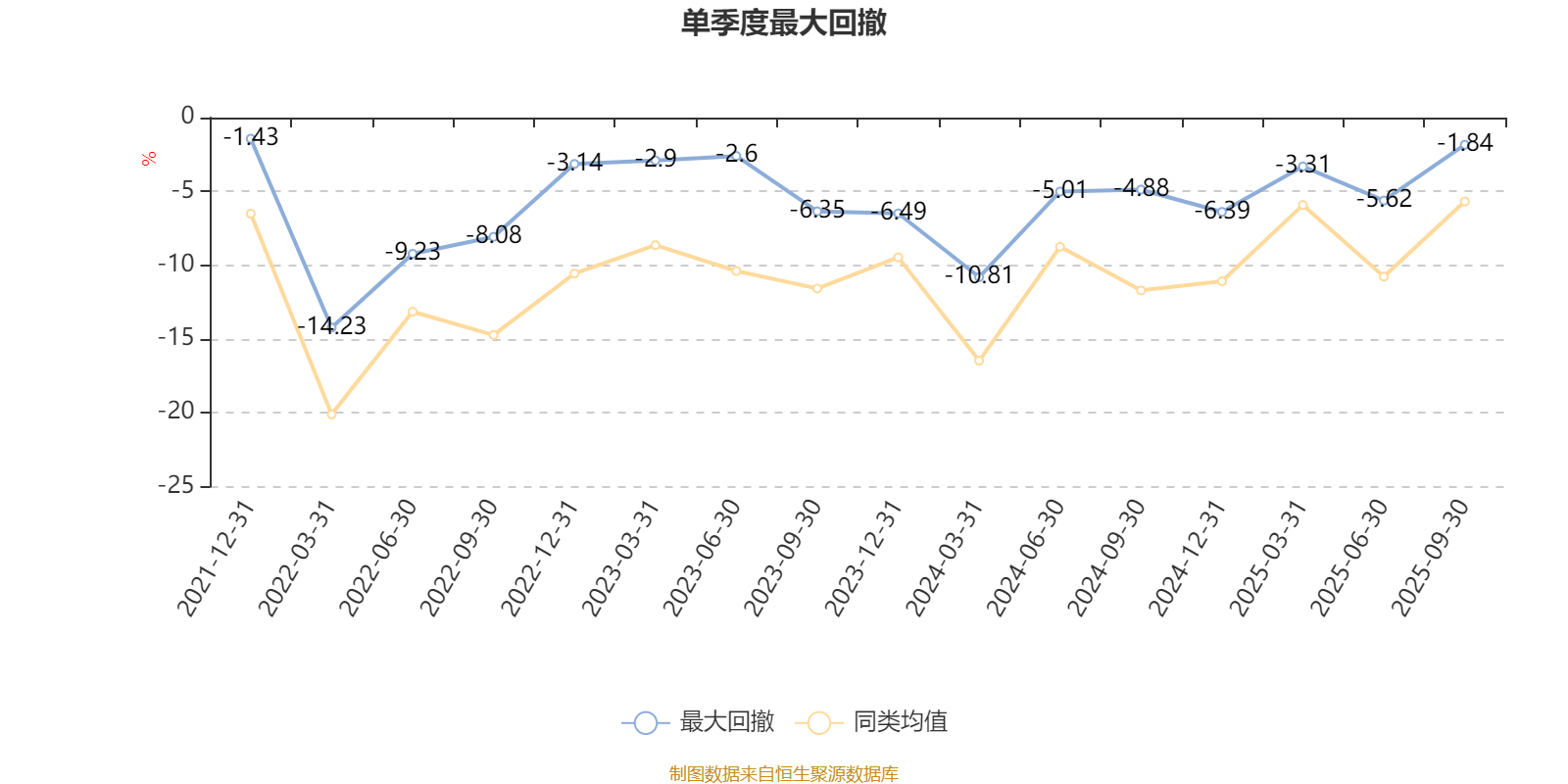 截至10月27日,基金近三年最大回撤为18.44%,同类可比基金排名12/513。单季度最大回撤出现在2022年一季度,为14.23%。