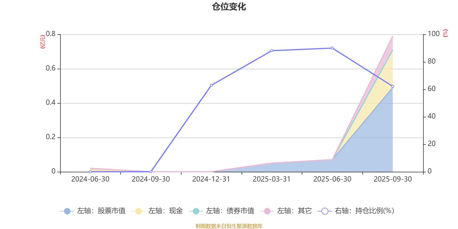 据定期报告数据统计,成立以来平均股票仓位为50.54%,同类平均为86.77%。2025年上半年末基金达到90.01%的最高仓位,2025年三季度末最低,为62.15%。