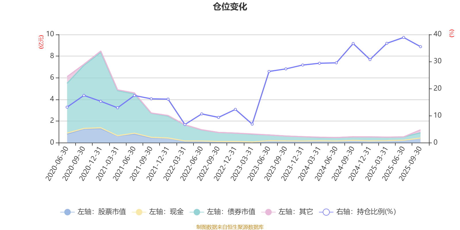 据定期报告数据统计,近三年平均股票仓位为28.25%,同类平均为19.14%。2025年上半年末基金达到38.91%的最高仓位,2022年一季度末最低,为6.73%。