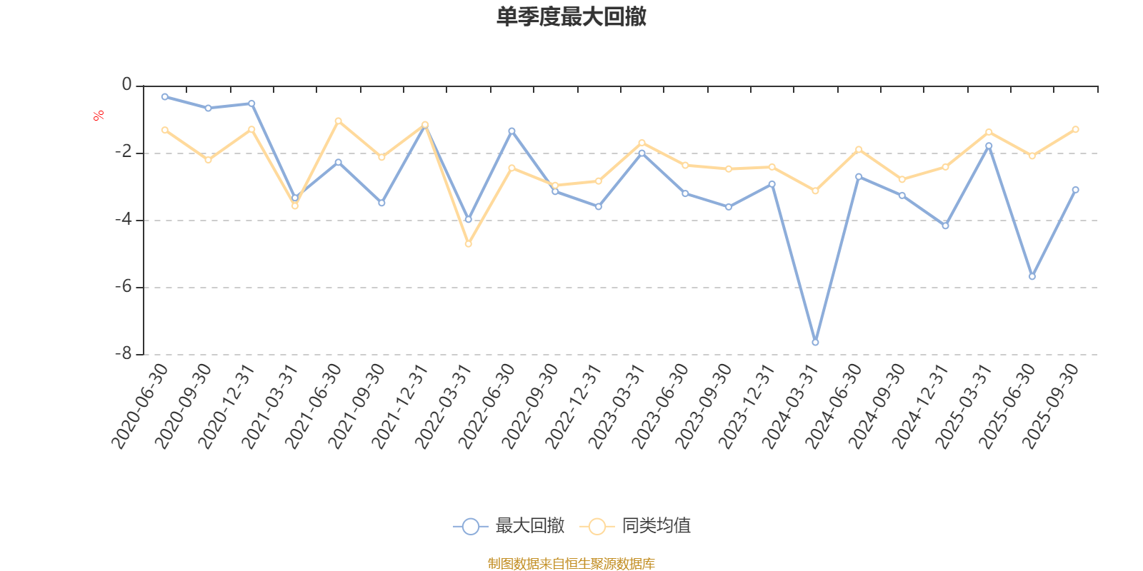 截至10月27日,基金近三年最大回撤为14.24%,同类可比基金排名481/535。单季度最大回撤出现在2024年一季度,为7.64%。