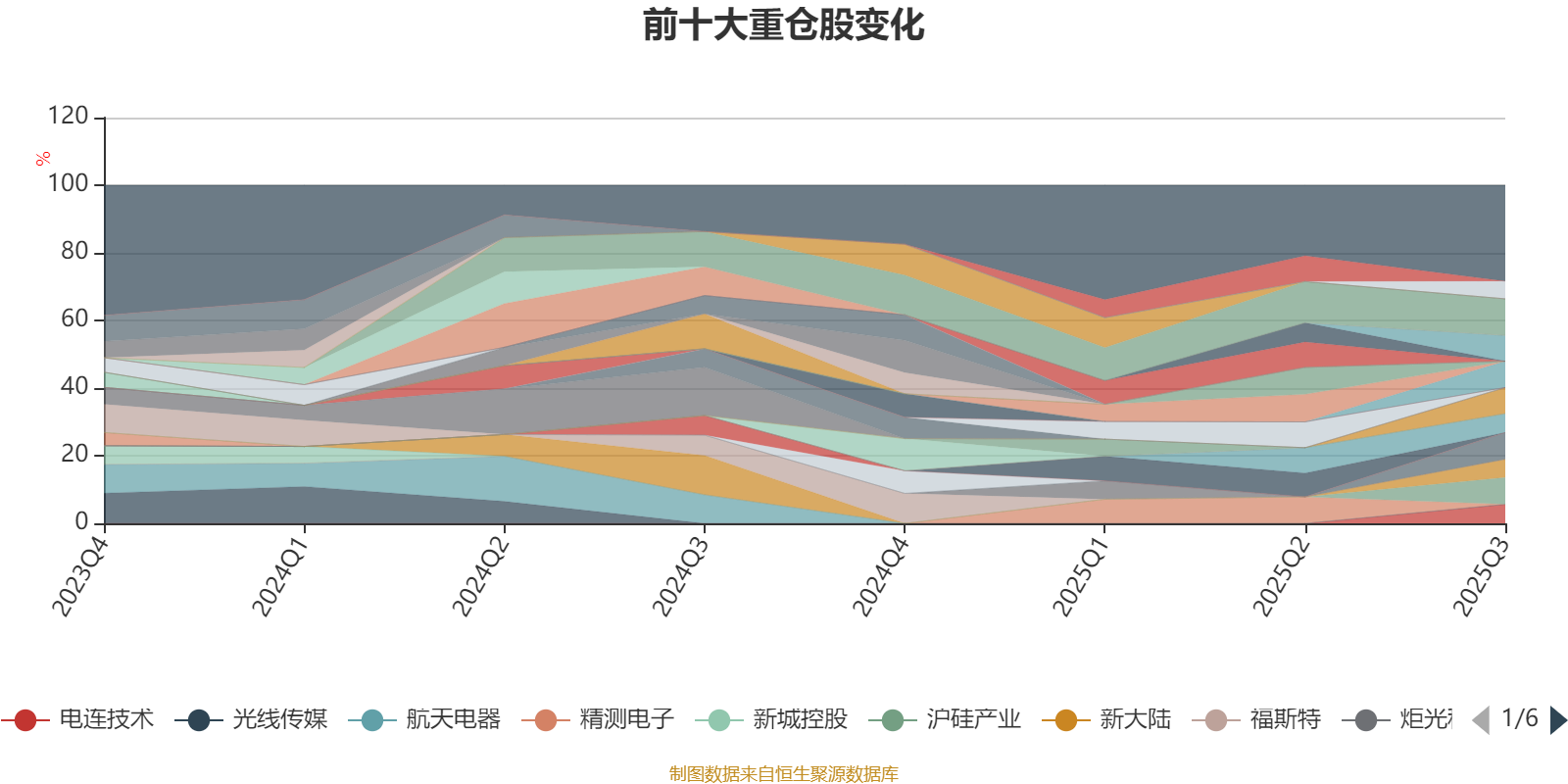 该基金持股集中度较高,近2年前十大重仓股集中度长期超过60%。截至2025年三季度末,基金十大重仓股分别是美芯晟、富瀚微、沪硅产业、卓胜微、华策影视、华立科技、电连技术、南微医学、新大陆、振华风光。