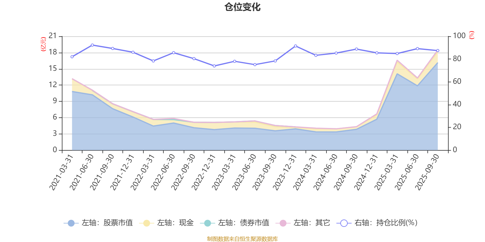 据定期报告数据统计,近三年平均股票仓位为83.45%,同类平均为85.99%。2021年上半年末基金达到92.3%的最高仓位,2022年末最低,为73.98%。