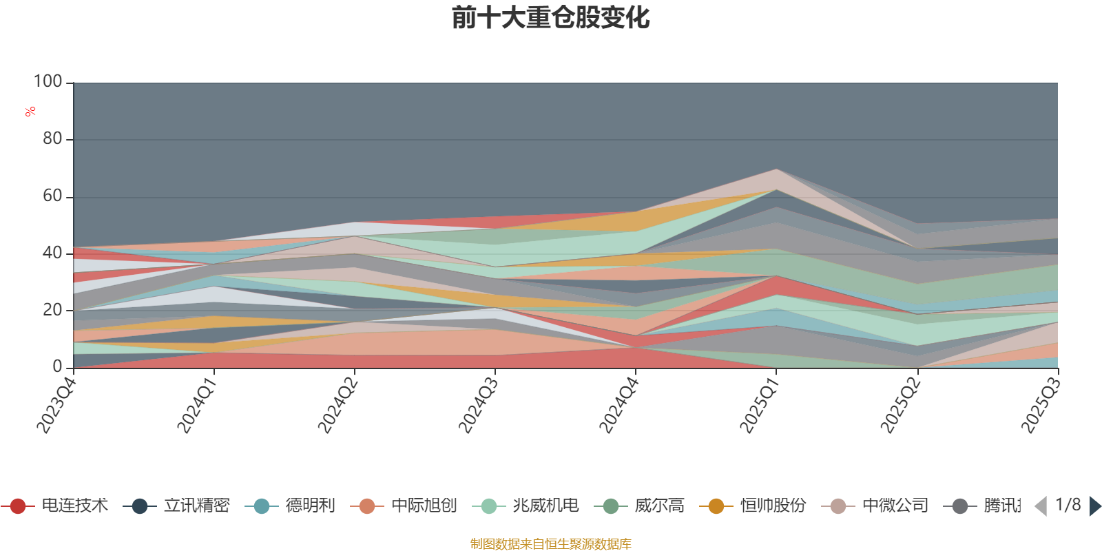 截至2025年三季度末,基金十大重仓股分别是中芯国际、中微公司、华虹半导体、阿里巴巴-W、中际旭创、源杰科技、德明利、深南电路、东威科技、骄成超声。