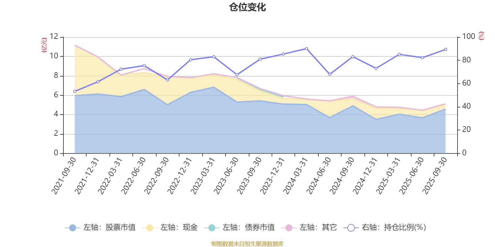 据定期报告数据统计,近三年平均股票仓位为80.7%,同类平均为85.66%。2024年一季度末基金达到90.04%的最高仓位,2021年三季度末最低,为53.29%。