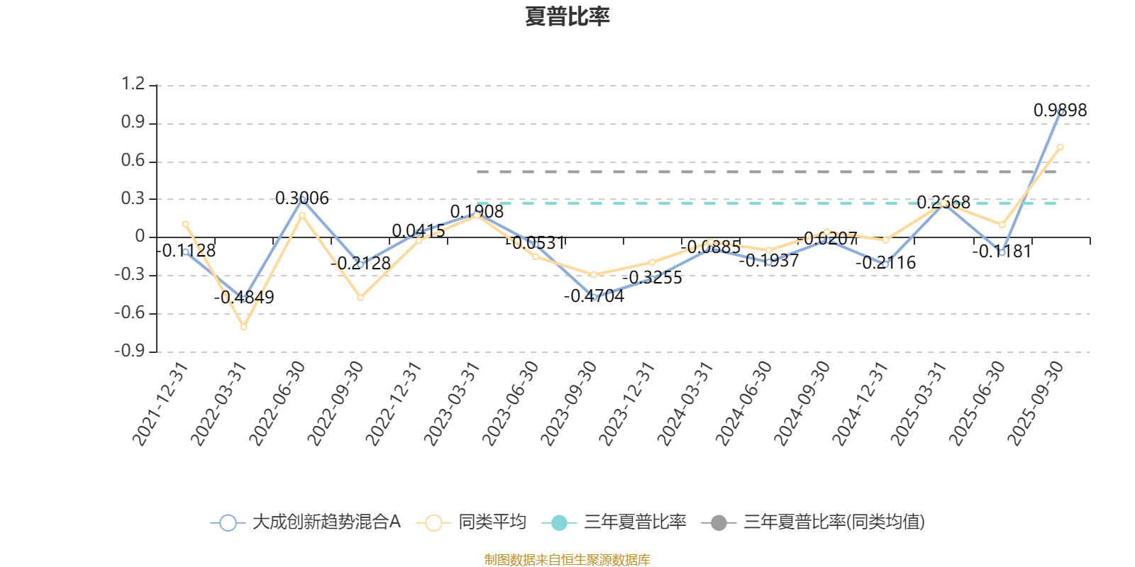 截至9月30日,基金近三年夏普比率为0.269,位于同类可比基金406/518。
