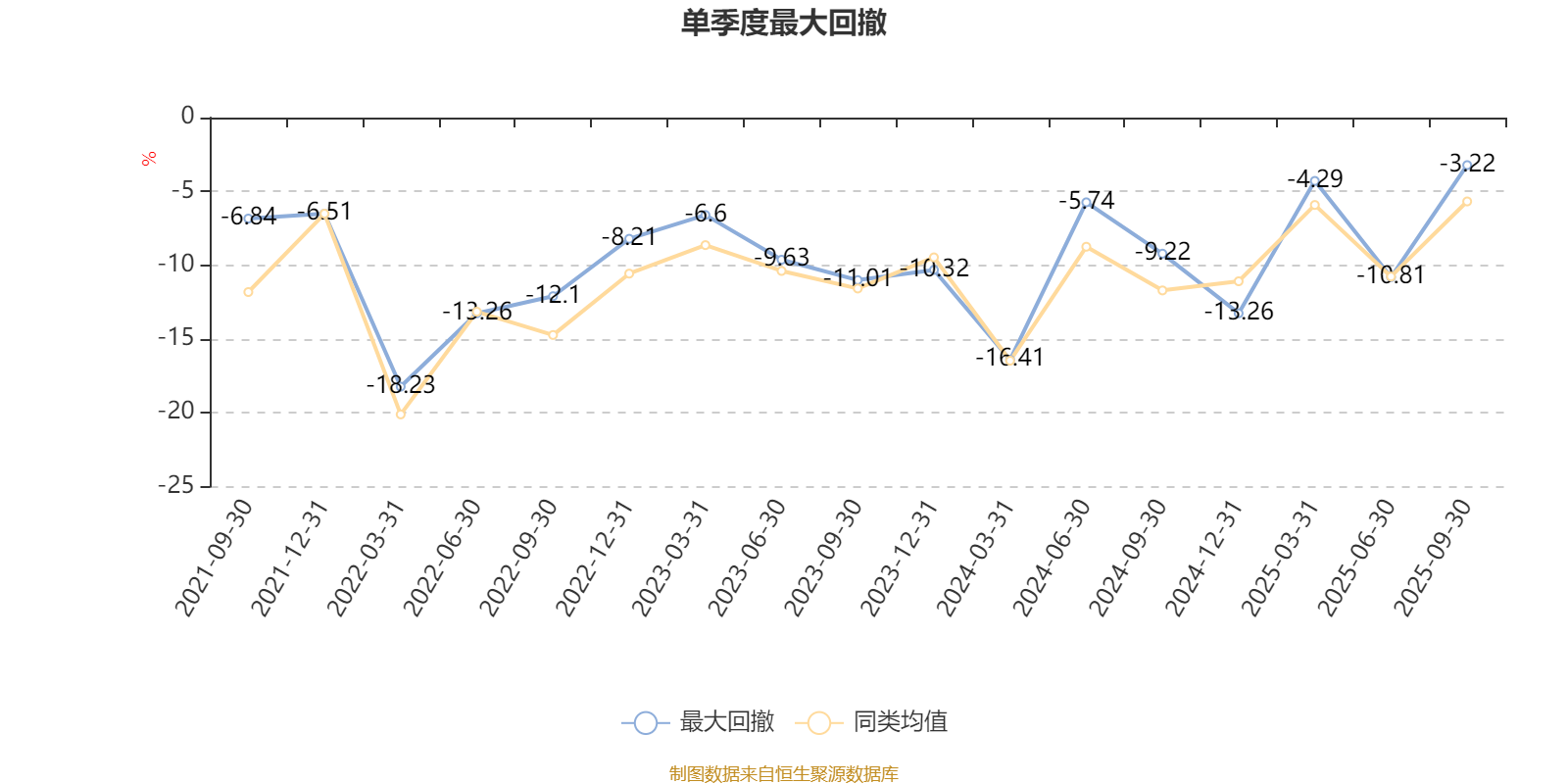 截至10月27日,基金近三年最大回撤为32.91%,同类可比基金排名186/513。单季度最大回撤出现在2022年一季度,为18.23%。