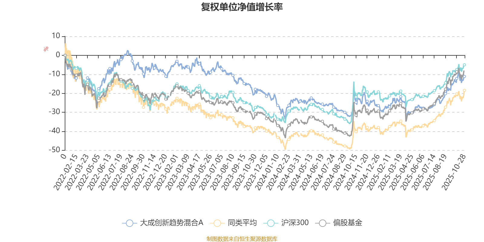 截至10月28日,大成创新趋势混合A近三个月复权单位净值增长率为15.79%,位于同类可比基金269/621;近半年复权单位净值增长率为27.55%,位于同类可比基金340/619;近一年复权单位净值增长率为15.34%,位于同类可比基金478/611;近三年复权单位净值增长率为-2.36%,位于同类可比基金435/518。