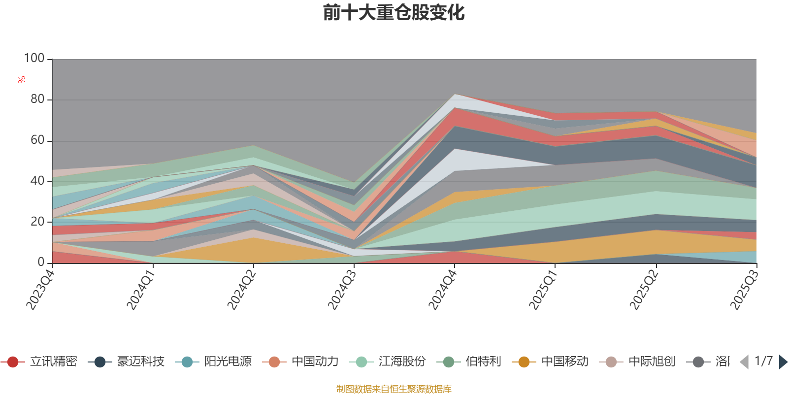 截至2025年三季度末,基金十大重仓股分别是宁德时代、腾讯控股、爱旭股份、敏实集团、阳光电源、中国移动、美的集团、恩华药业、东方电缆、安徽合力。