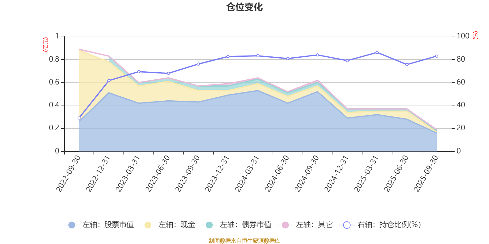 据定期报告数据统计,近三年平均股票仓位为77.51%,同类平均为83.73%。2025年一季度末基金达到86.21%的最高仓位,2022年三季度末最低,为29.11%。