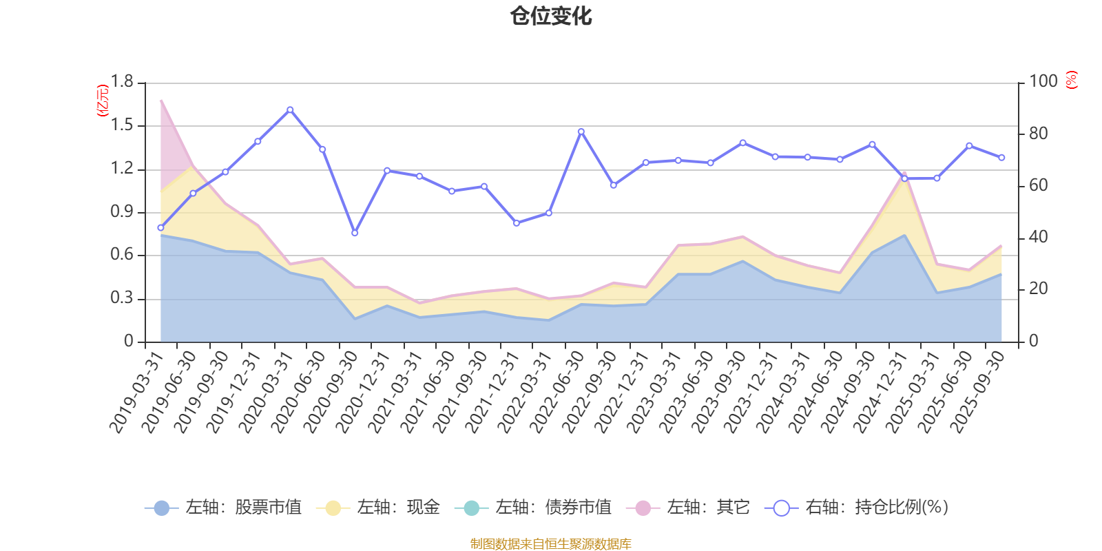 据定期报告数据统计,近三年平均股票仓位为70.62%,同类平均为72.35%。2020年一季度末基金达到89.55%的最高仓位,2020年三季度末最低,为42.05%。