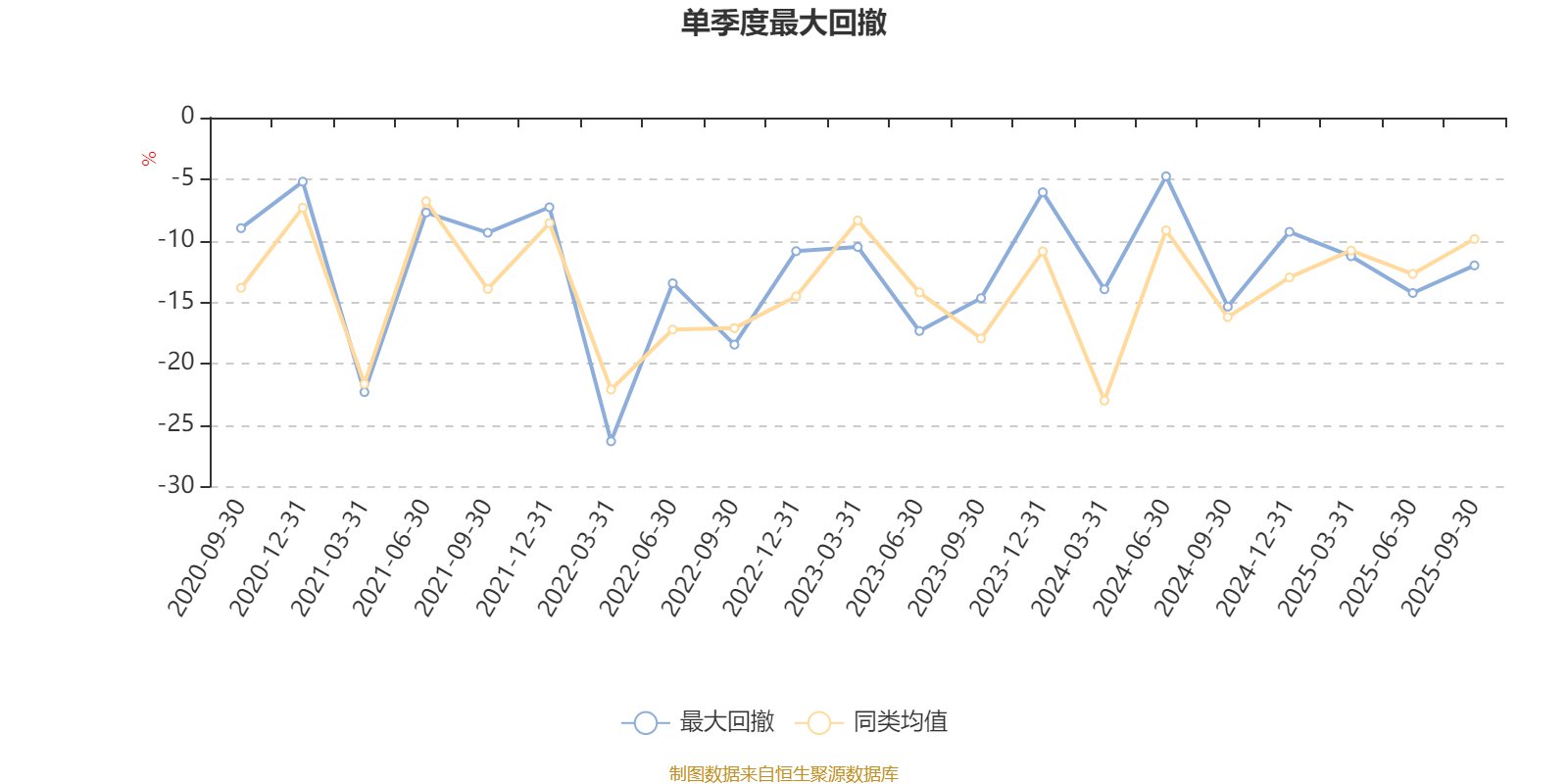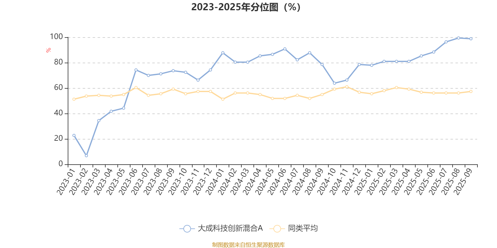通过所选区间该基金净值增长率分位图,可以观察该基金与同类基金业绩比较情况。图为坐标原点到区间内某时点的净值增长率在同类基金中的分位数。