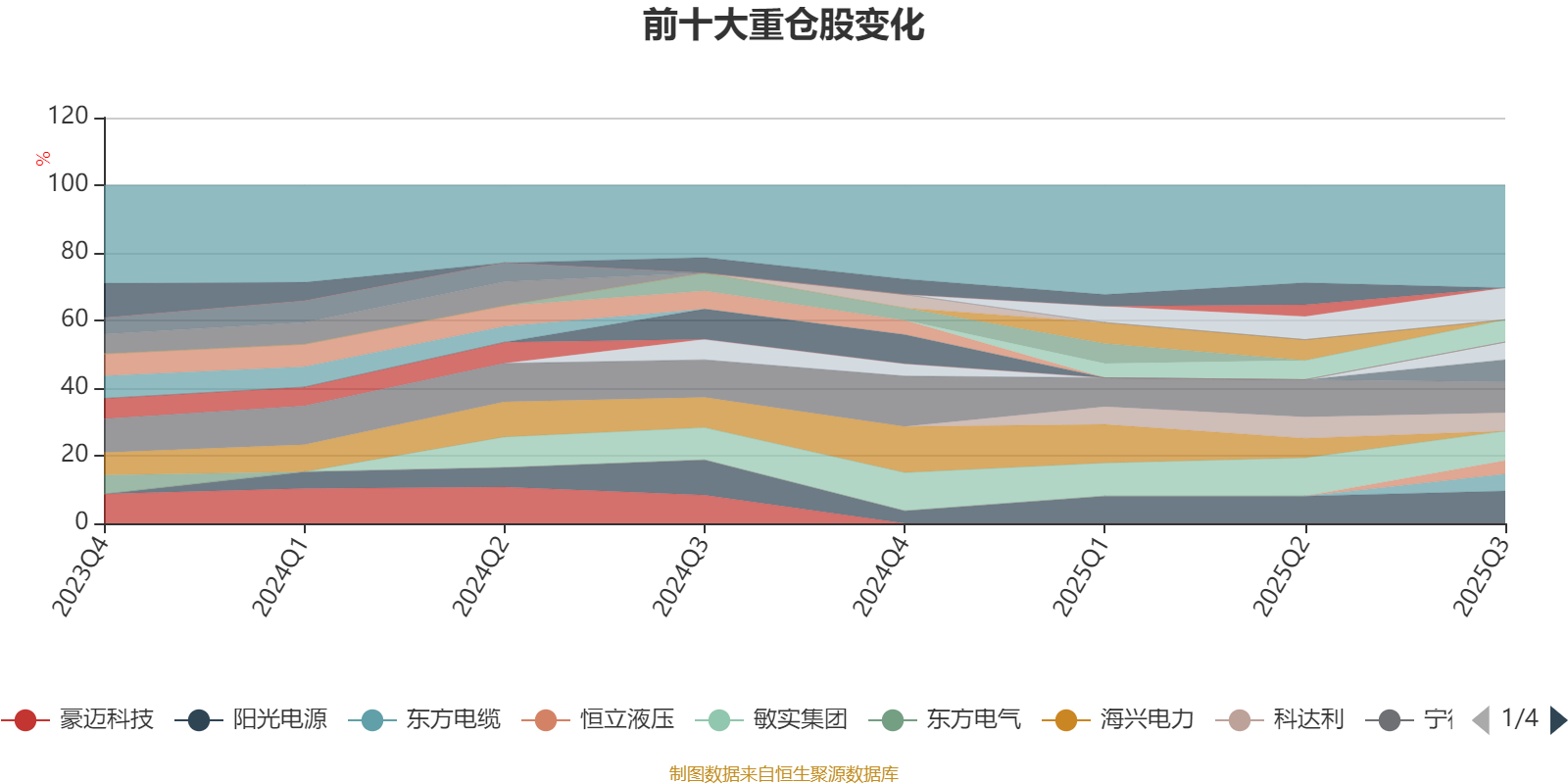 该基金持股集中度较高,近2年前十大重仓股集中度长期超过60%。截至2025年三季度末,基金十大重仓股分别是阳光电源、爱旭股份、宁德时代、敏实集团、中创新航、中矿资源、科达利、长城汽车、东方电缆、恒立液压。