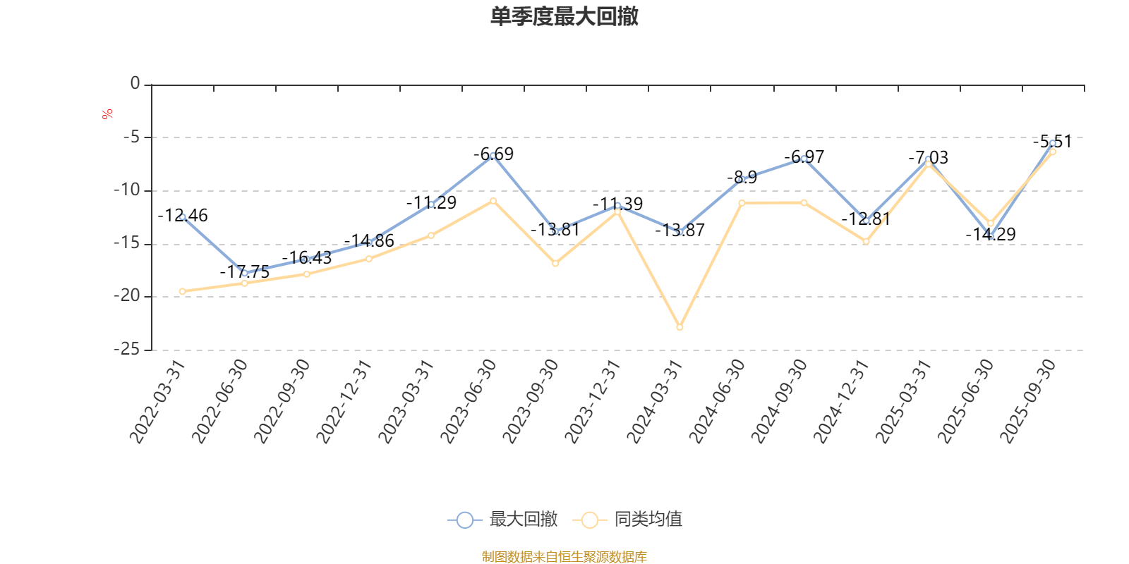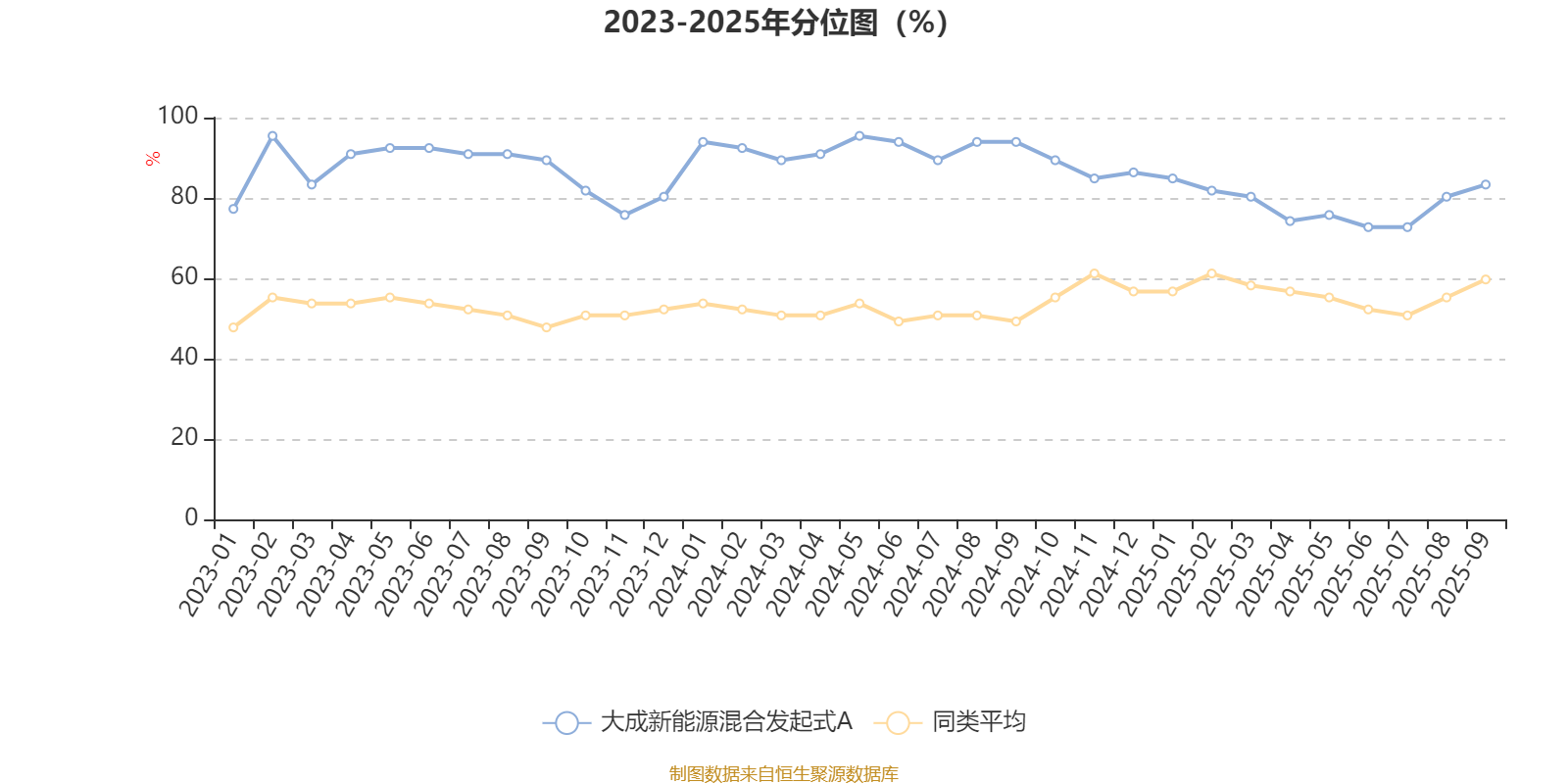 通过所选区间该基金净值增长率分位图,可以观察该基金与同类基金业绩比较情况。图为坐标原点到区间内某时点的净值增长率在同类基金中的分位数。
