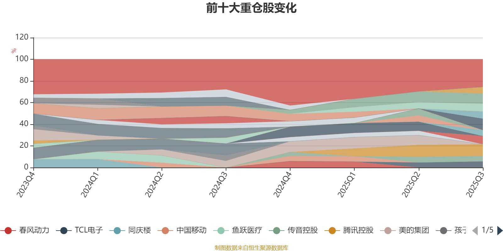 该基金持股集中度较高。截至2025年三季度末,基金十大重仓股分别是腾讯控股、圆通速递、阿里巴巴-W、ST华通、吉利汽车、江淮汽车、快手-W、TCL电子、宁德时代、传音控股。