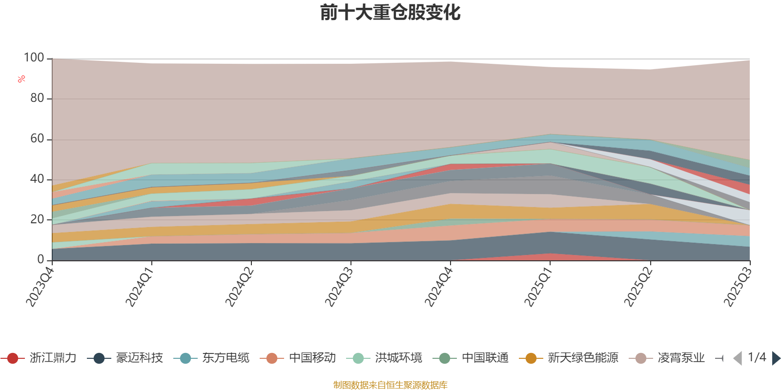 截至2025年三季度末,基金十大重仓股分别是科达利、豪迈科技、中国移动、东方电缆、中联重科、宝丰能源、新奥能源、中国龙工、华菱钢铁、兴发集团。