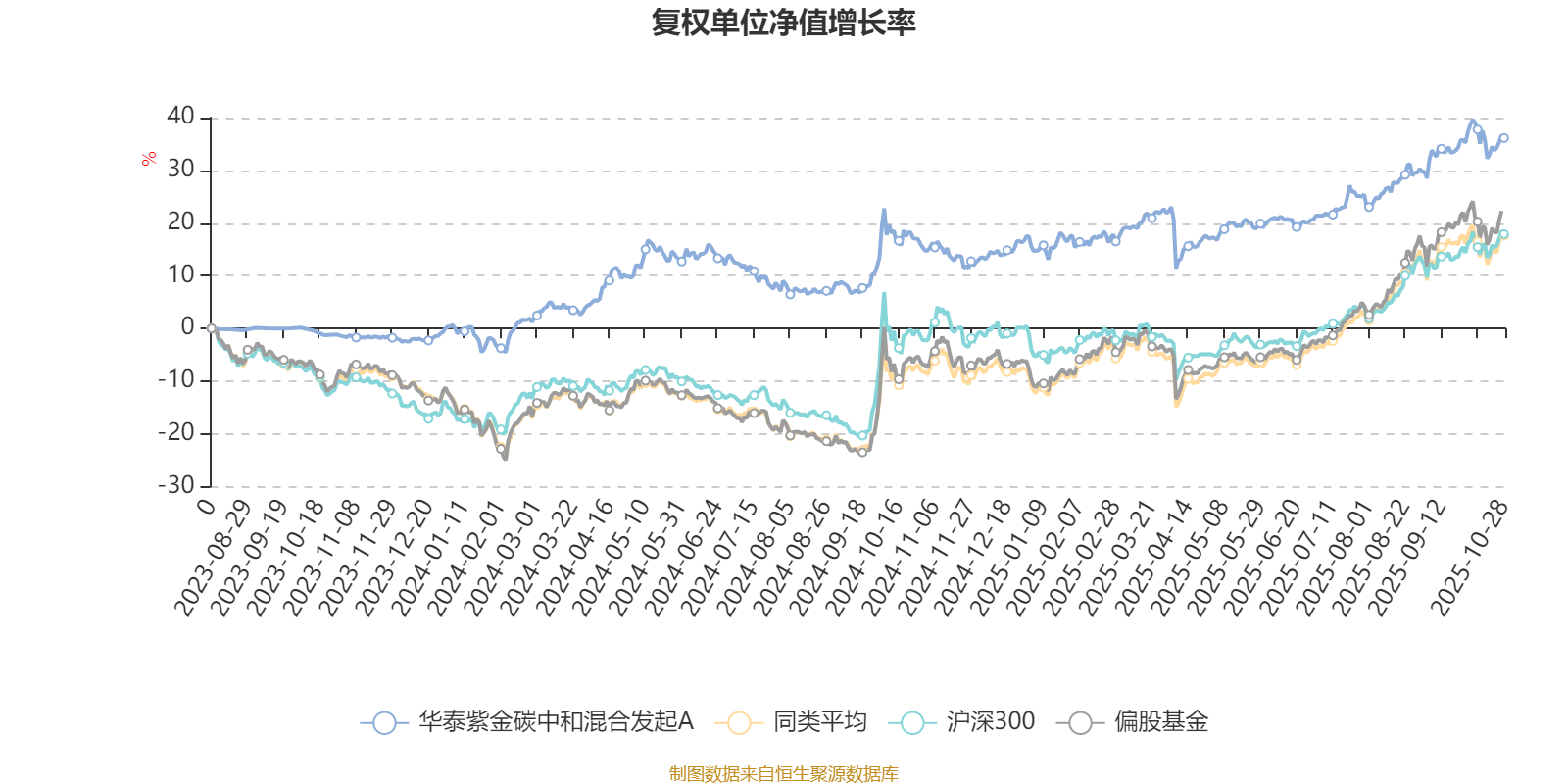 截至10月28日,华泰紫金碳中和混合发起A近三个月复权单位净值增长率为8.81%,位于同类可比基金466/689;近半年复权单位净值增长率为16.05%,位于同类可比基金549/688;近一年复权单位净值增长率为16.38%,位于同类可比基金470/653。